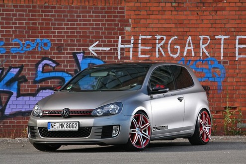 CFC Styling Station from Neuss, Germany has a package for the Golf VI GTI which is just designed to make the car more fun. They have collaborated with some other tuners and provide everything from wheels and suspension, to kicking audio system and even engine tuning. But first step, because it’s CFC specialty, is a fantastic silver coating for the body which costs €1,500.